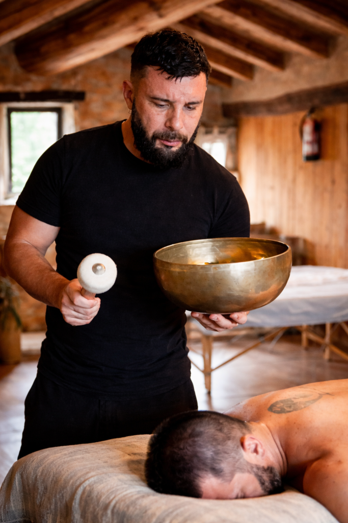 In his therapeutic work, Raúl combines three complementary approaches. He begins with deep tissue massage, helping release physical tension and areas of accumulated stress. This is followed by Reiki-based energetic work, aimed at supporting balance across the body and emotional field. Sessions often close with sound healing, using vibration as a way to accompany relaxation and internal harmony. These methods are offered as supportive tools, always respecting the person’s own process and limits.